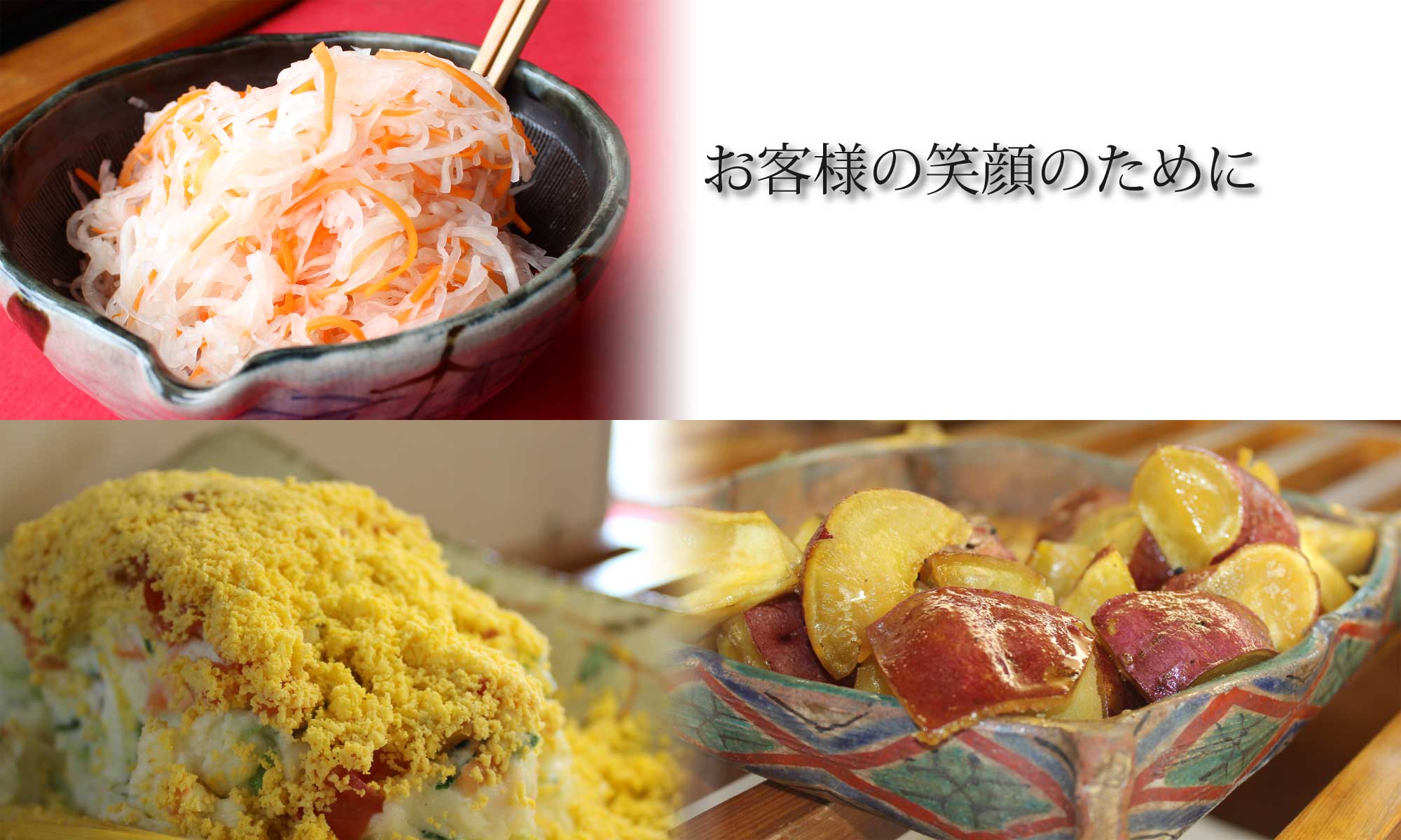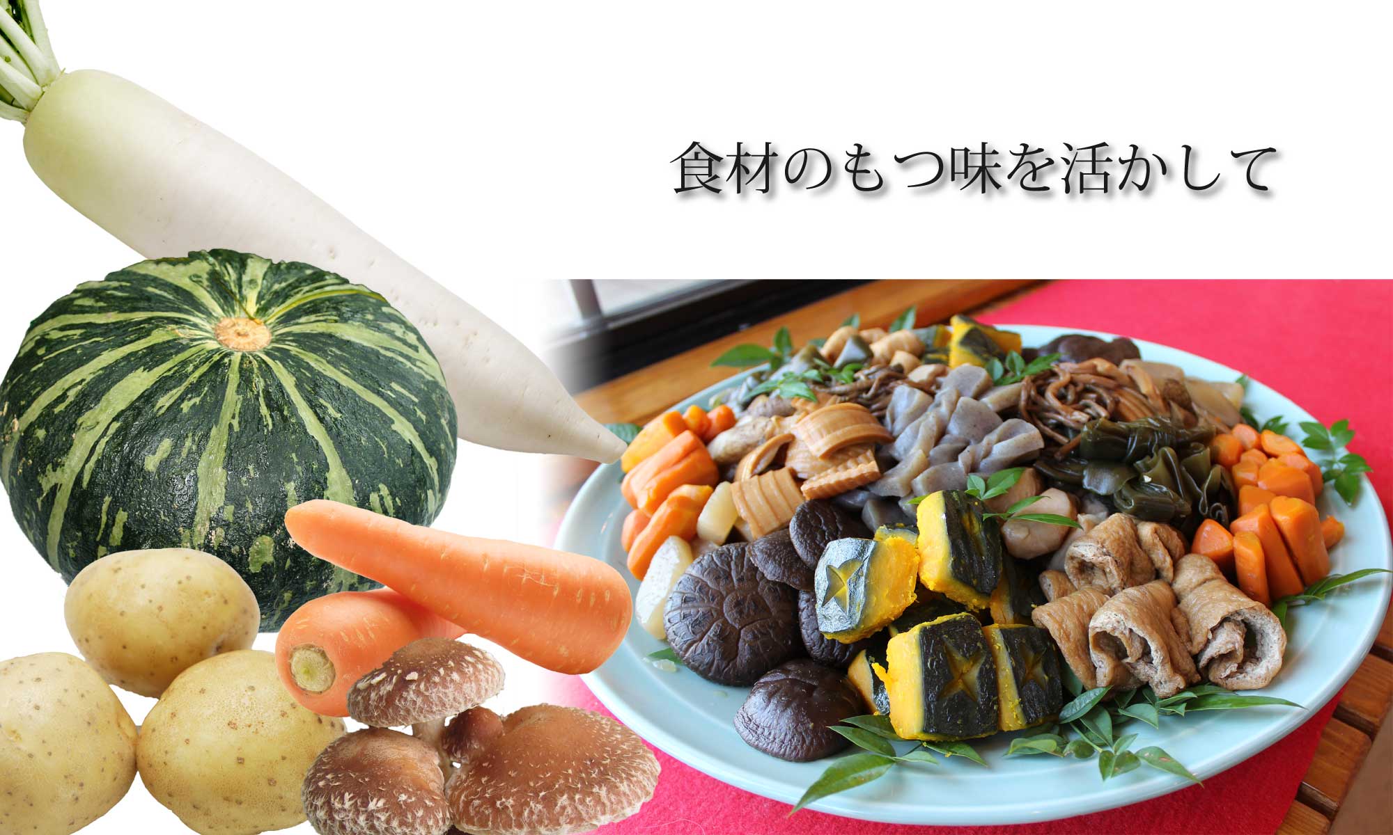 おかずは新鮮な旬の野菜をふんだんに使い、いりこやちりめんじゃこなどをダシにした素朴な味付けです。